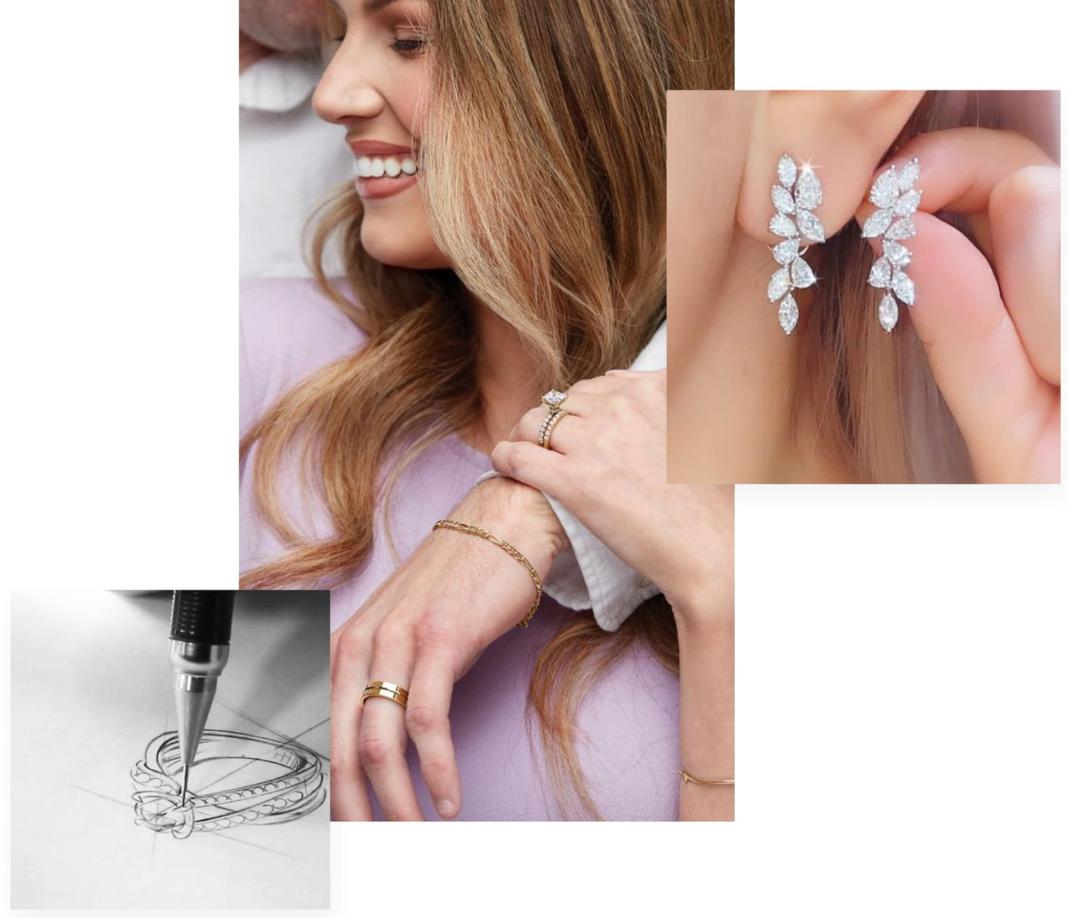 Our mission is to offer stunning jewellery pieces, all adorned with moissanites. We understand that every individual is unique, and so should their jewellery. Our customization options empower our customers to create bespoke pieces that reflect their distinct style and personality. Whether it's a custom engagement ring or a personalized necklace, our craftsmen are dedicated to bringing your vision to life.