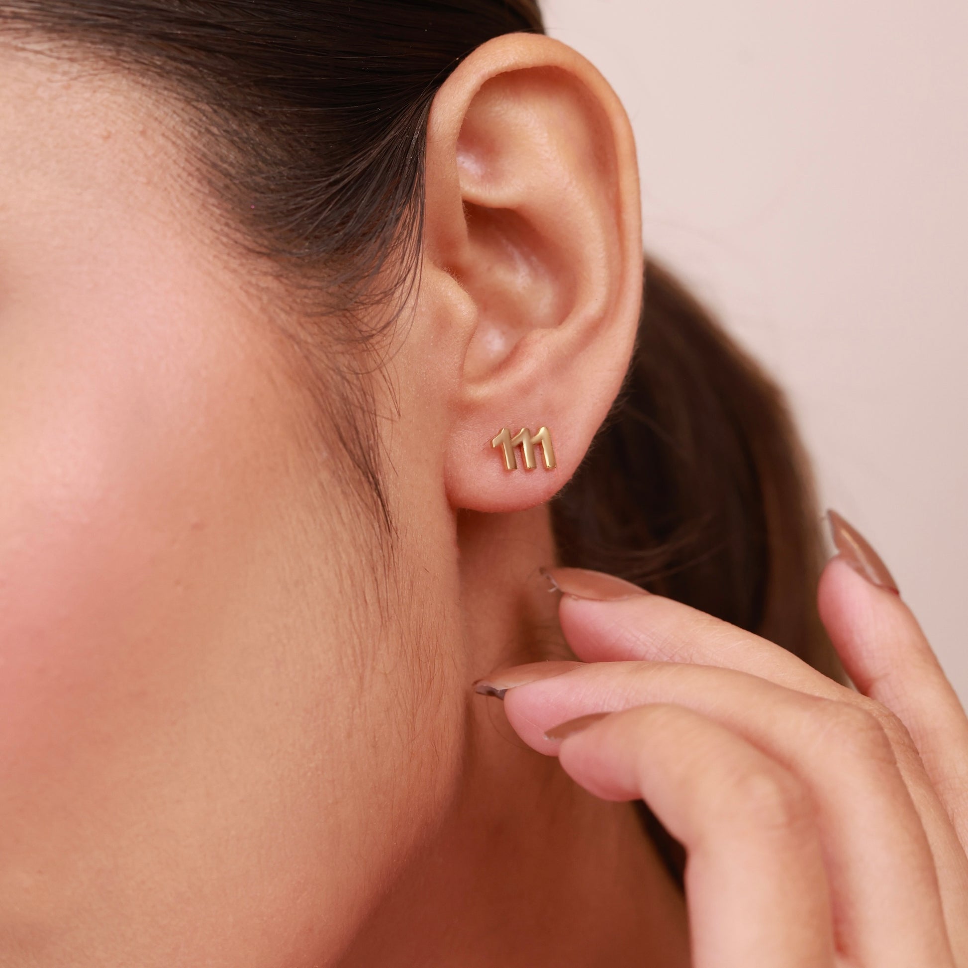 Elevate your style with these stunning Angel Number 111 studs by meorii. Made of 925 sterling silver, these studs bear a special significance as they represent the powerful number 111. Show off your spiritual side while adding a touch of elegance to any outfit.
