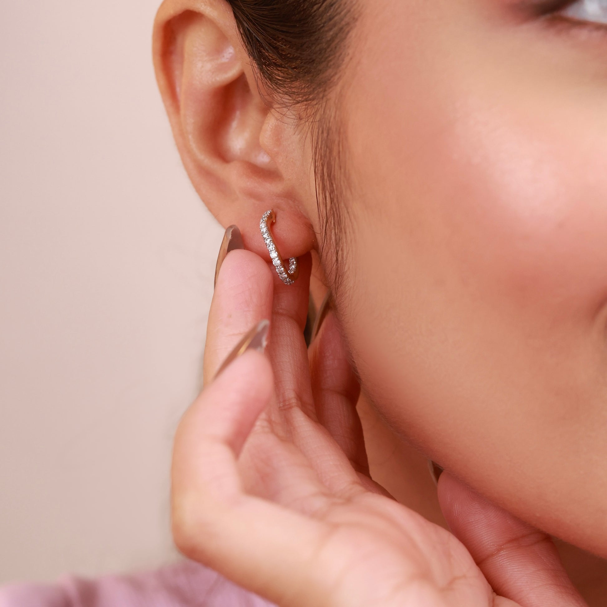 Expertly crafted with moissanite stones and 925 silver, our Wave Moissanite Huggies add a touch of elegance to any outfit. The unique wave design of the hoops provides a modern twist to the classic Huggies style. Enjoy the brilliance and durability of moissanite with these stunning earrings.
