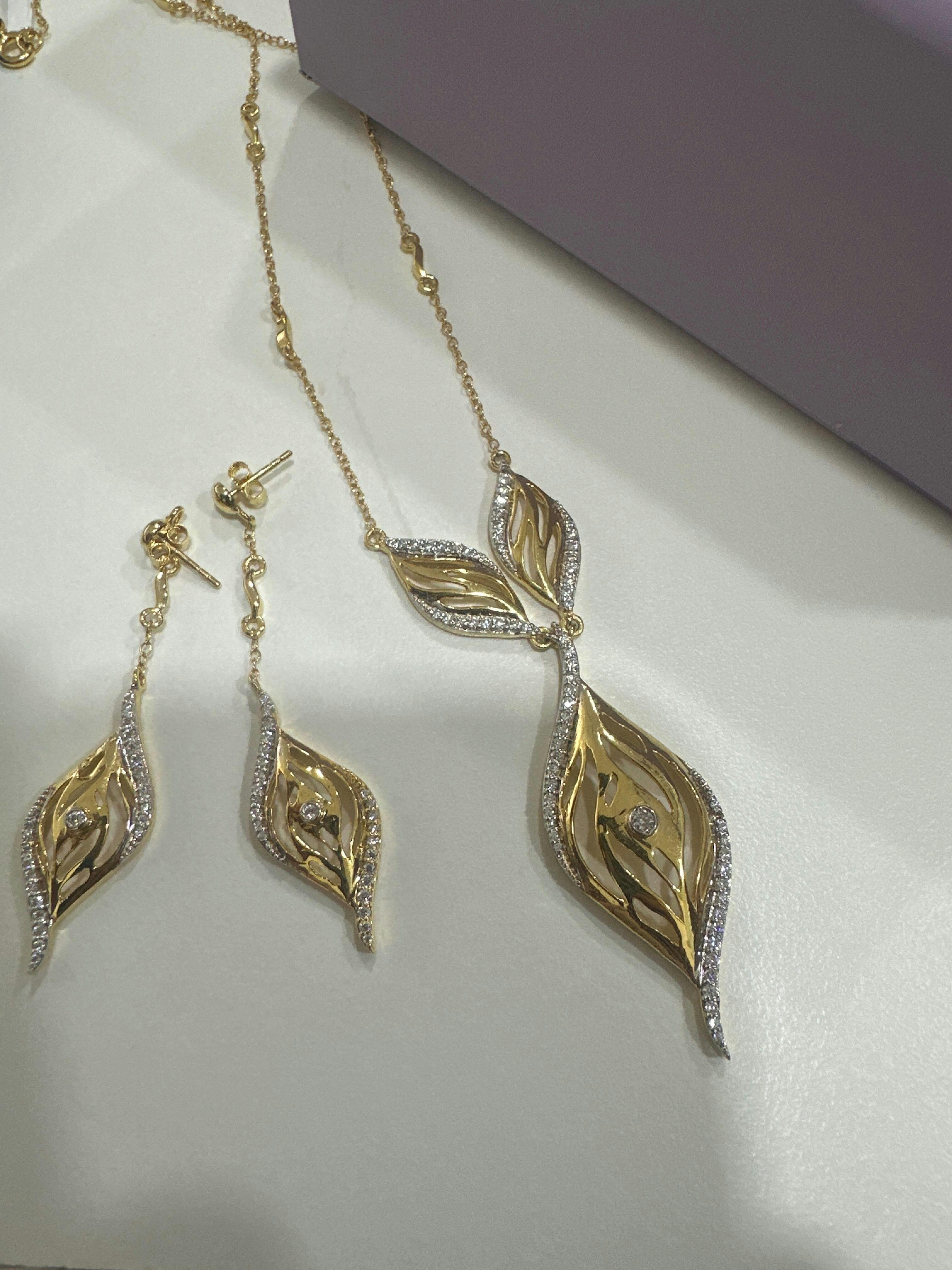 Become a trendsetter with our Fana Gold Necklace Set. Perfect for daily wear or special occasions, this set features pure 925 silver and sparkling moissanite, giving it a luxurious look and feel. Inspired by Dubai Diaries and festive vibes, this set is the perfect addition to any jewelry collection.